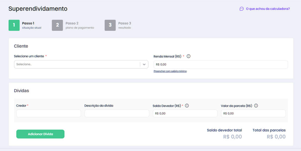 A calculadora de superendividamento faz o cálculo de revisão das dívidas?