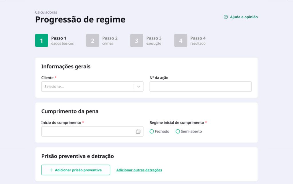 Preencha o nome do seu cliente, o início do cumprimento e o regime inicial de cumprimento. O início do cumprimento é a data da prisão após a sentença ter transitado em julgado.