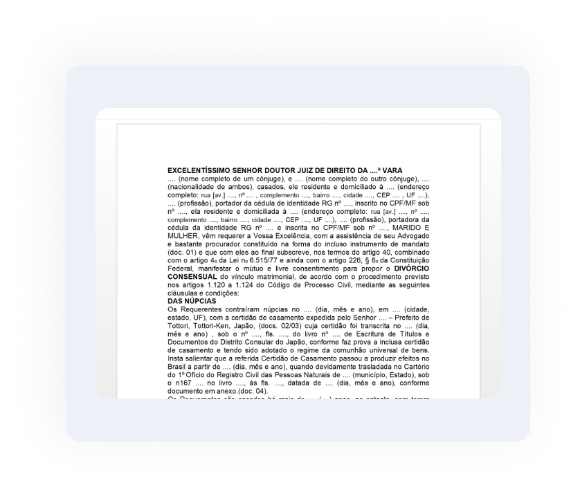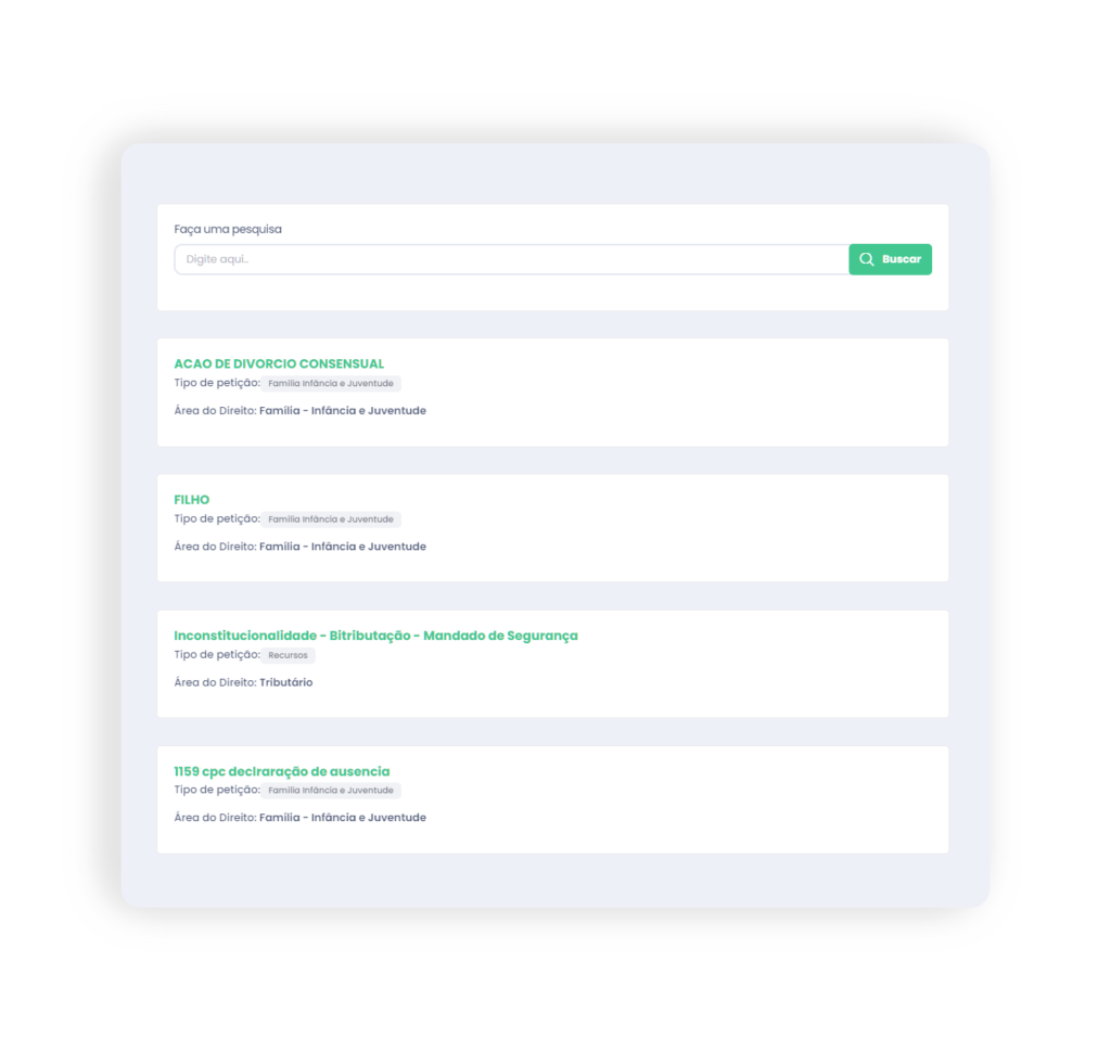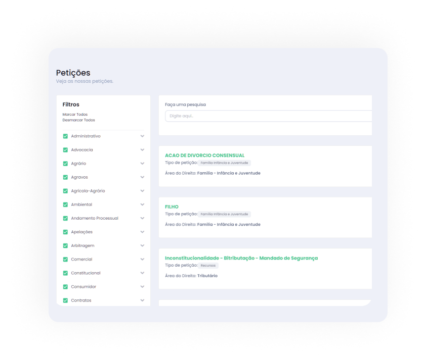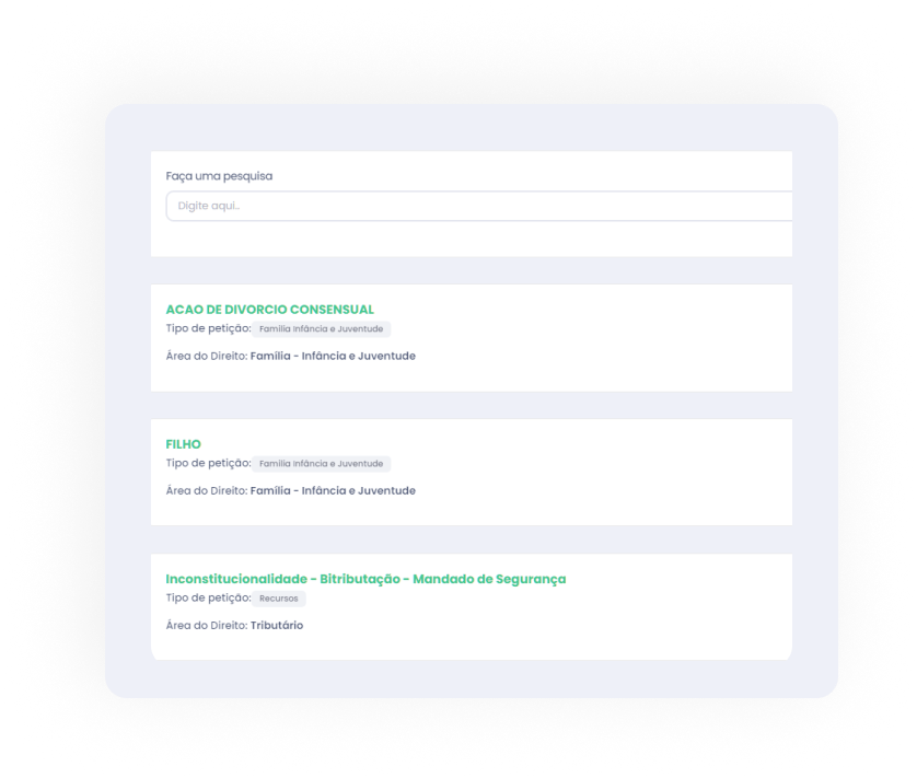 Não perca mais tempo criando peças do zero. Acesse os mais diversos modelos de documentos jurídicos, e dê mais agilidade e fluidez ao andamento de processos e reclamatórias dos seus clientes