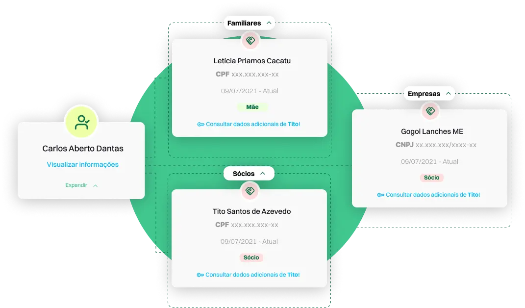 Relacionamentos (CPF/CNPJ): Mapeie conexões entre pessoas físicas e jurídicas.