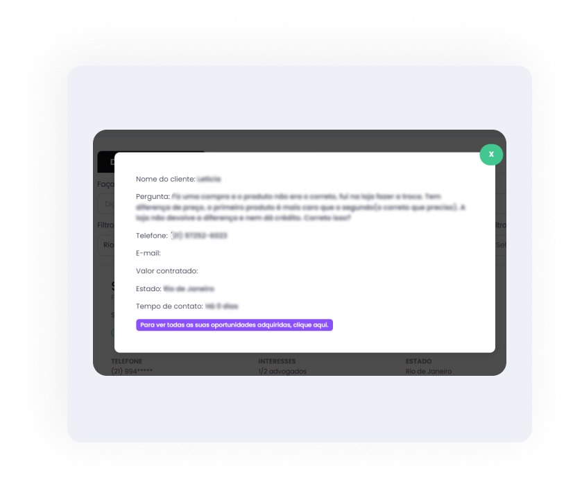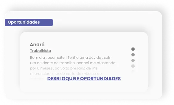 Potenciais clientes realizam simulações diárias em nossa plataforma, bem como solicitam auxílio de profissionais das mais diversas áreas jurídicas. E essas solicitações aparecem em sua área do assinante como oportunidades