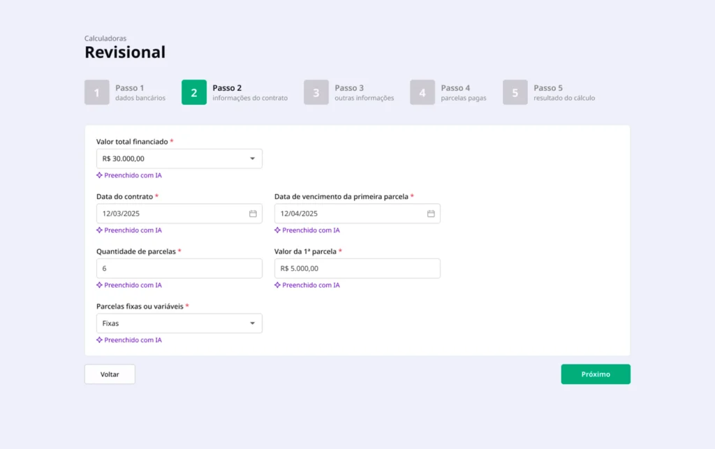 O que é o preenchimento automático por IA na Calculadora Revisional?