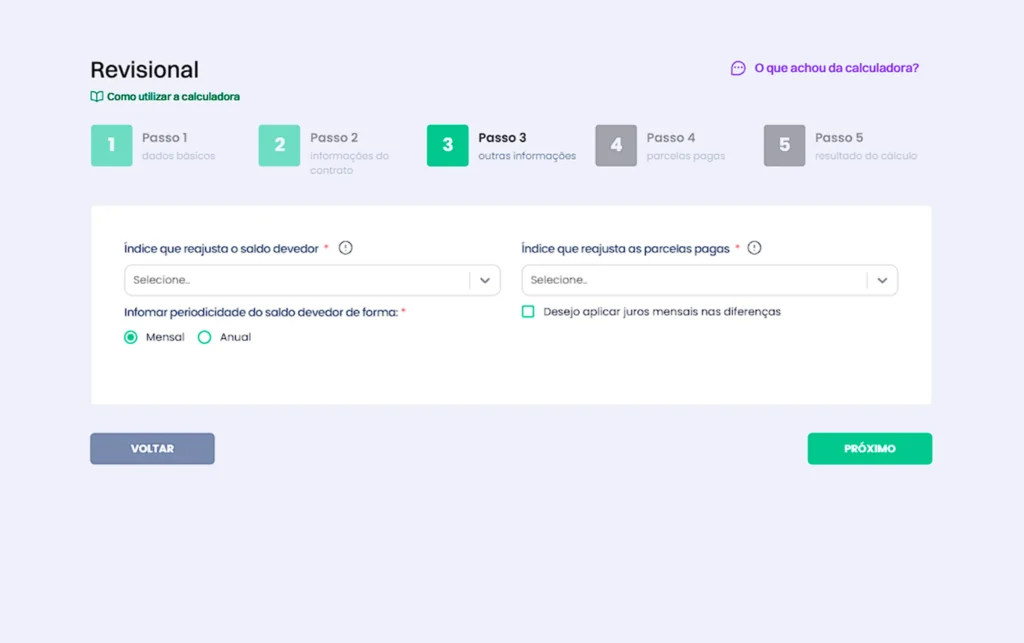 O sistema vai apontar qual é a situação do financiamento calculado. O principal fator considerado é a taxa média de juros praticada e a fixada pelo BACEN à época da assinatura do contrato.