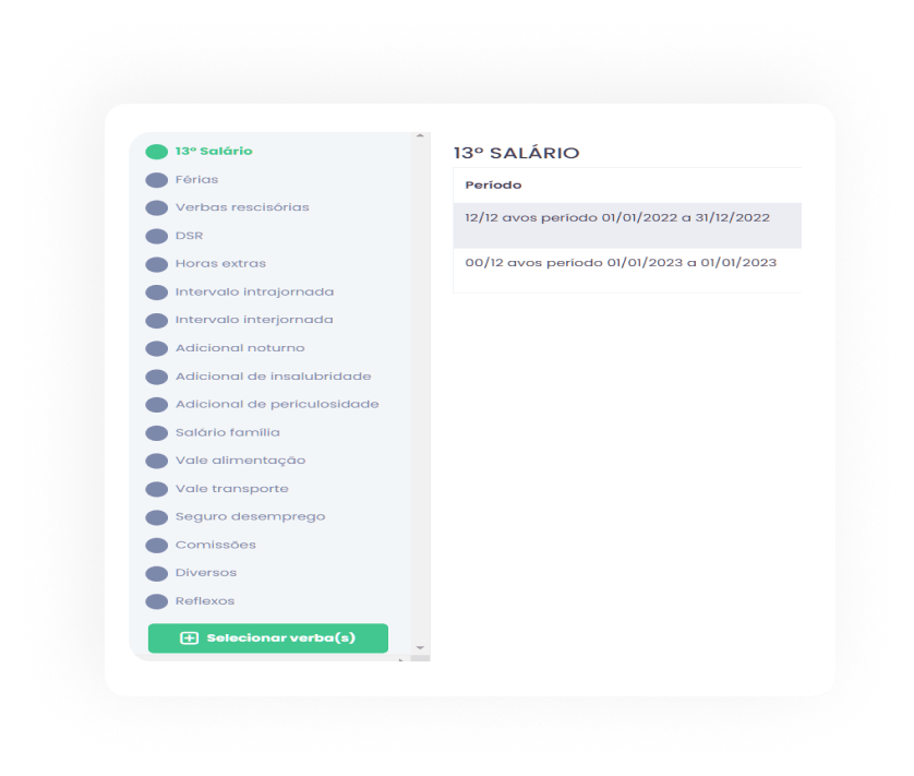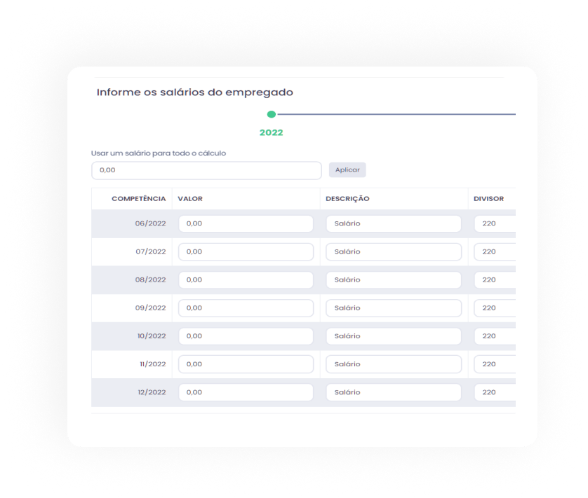 Para calcular a rescisão trabalhista, basta informar os dados do contrato, como data de admissão, desligamento e o motivo da rescisão. O sistema calcula todas as verbas rescisórias, incluindo saldo de salário, aviso prévio, férias proporcionais, 13º salário e eventuais multas e indenizações devidas.