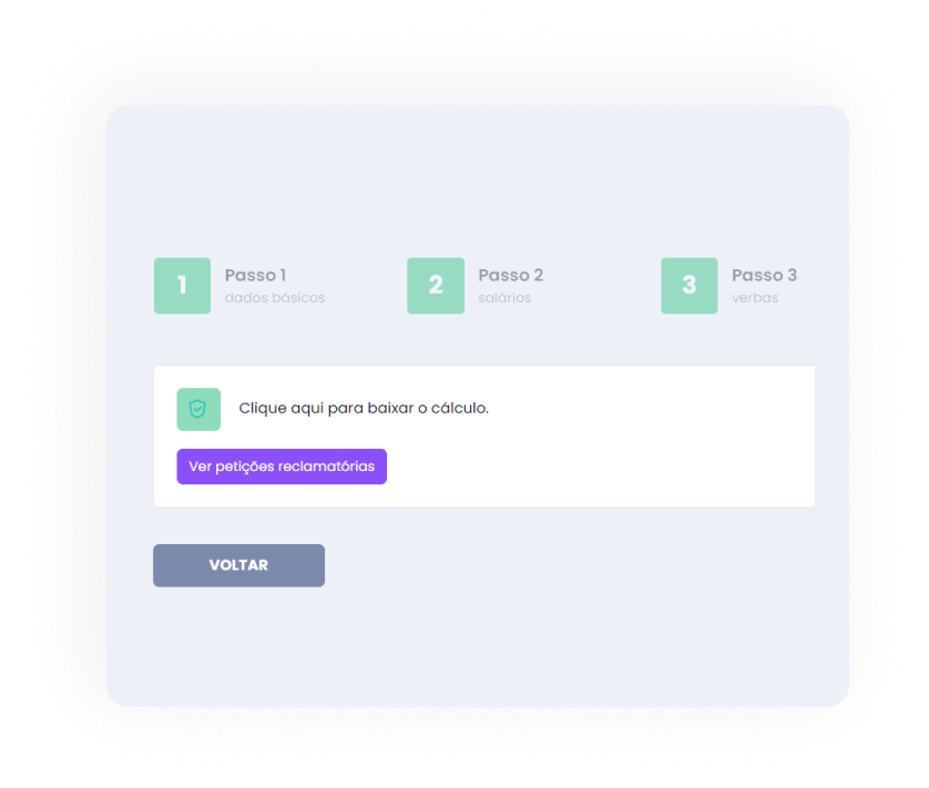 No resultado do cálculo trabalhista, você recebe um direcionamento de petição inicial